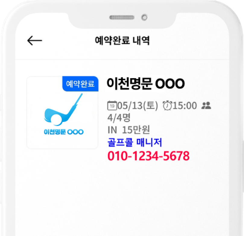 -골프장 라운드 티타임 예약자정보 : 예약자 명, 예약자 휴대전화번호